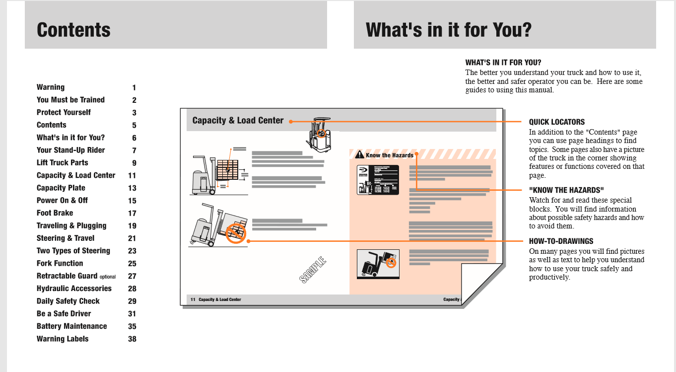 Operators manual to suit Crown RC3000 Stand up Counterbalanced Forklift.